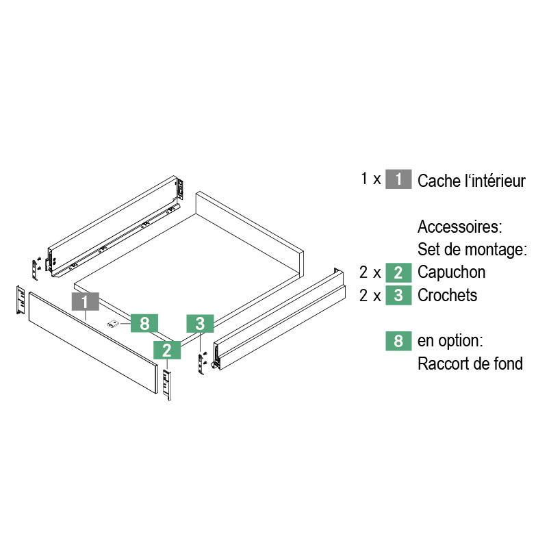 Set de montage pour 1 tiroir: