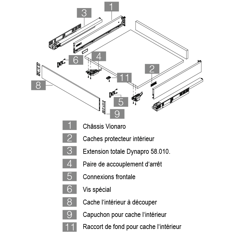 - Système de guidage sous châssis Dynapro, extension totale, voir 58.008.