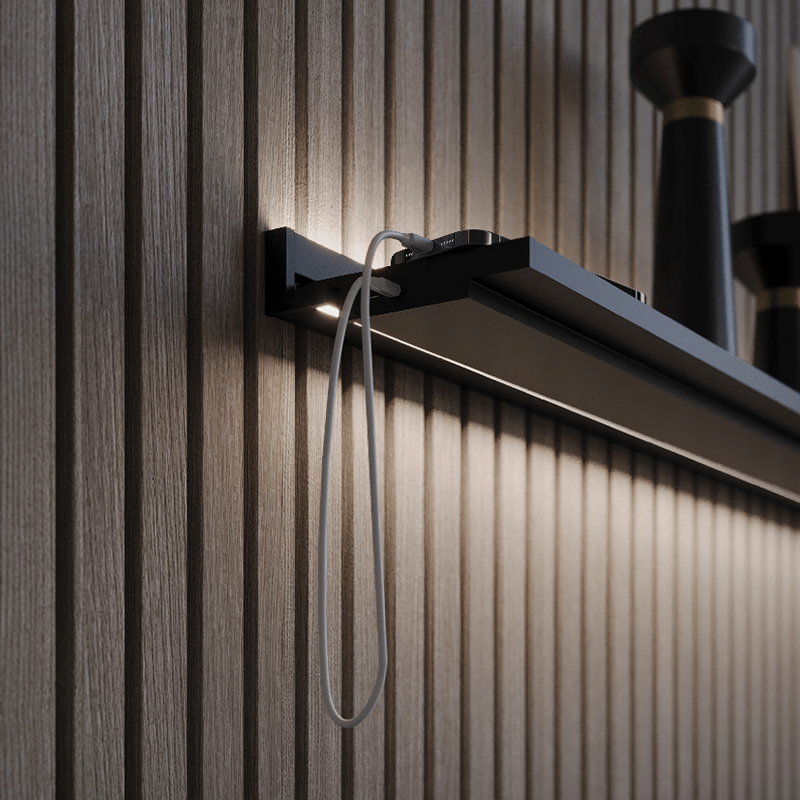 est recommandé pour la conception de bibliothèques, d'armoires suspendues minimalistes, la décoration de vide-poches dans les entrées ou pour les étagères de chevet, avec 2x sorties USB-C, pour LED Systema, noir mat