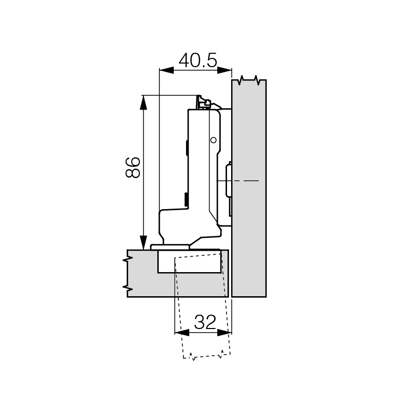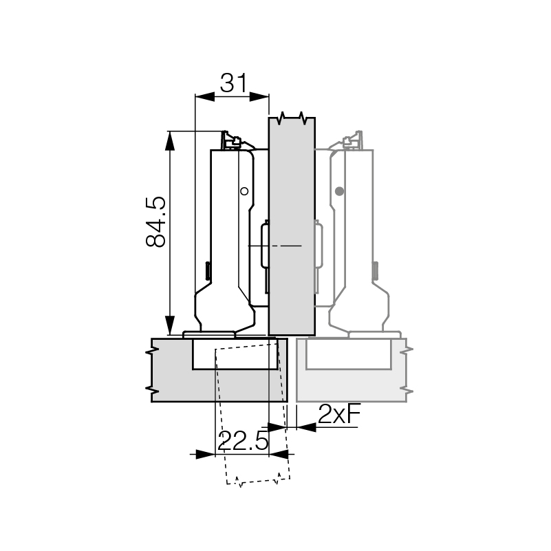 Acier nickelé, montage rapide du boîtier sans outil, technologie d'amortisseur invisible intégrée dans le bras de charnière et réglage possible sans outil de trois niveaux de puissance, réglage en hauteur ± 2,5 mm, réglage en profondeur + 3 / - 2 mm, réglage latéral ± 2 mm, valeurs de joints optimales jusqu'à une épaisseur de porte de 28 mm, sans cache protecteur, sans plaque de base