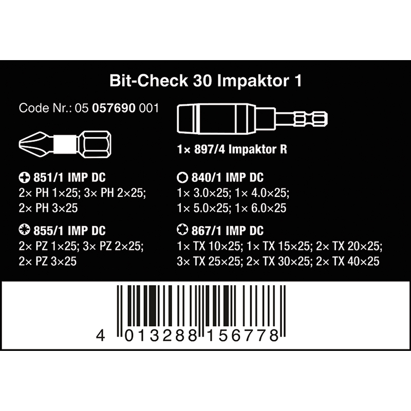 Bit-Check WERA Impaktor 1, 30-pcs