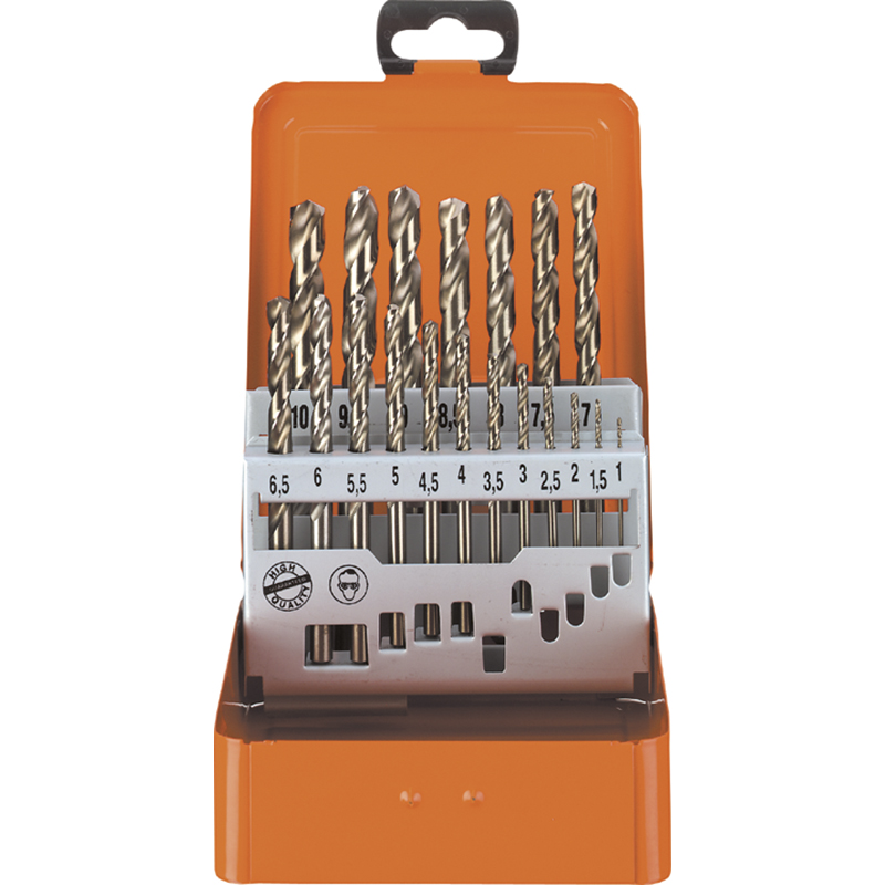 Assortiment complet de 19 forets en alliage cobalt avec queue cylindrique,