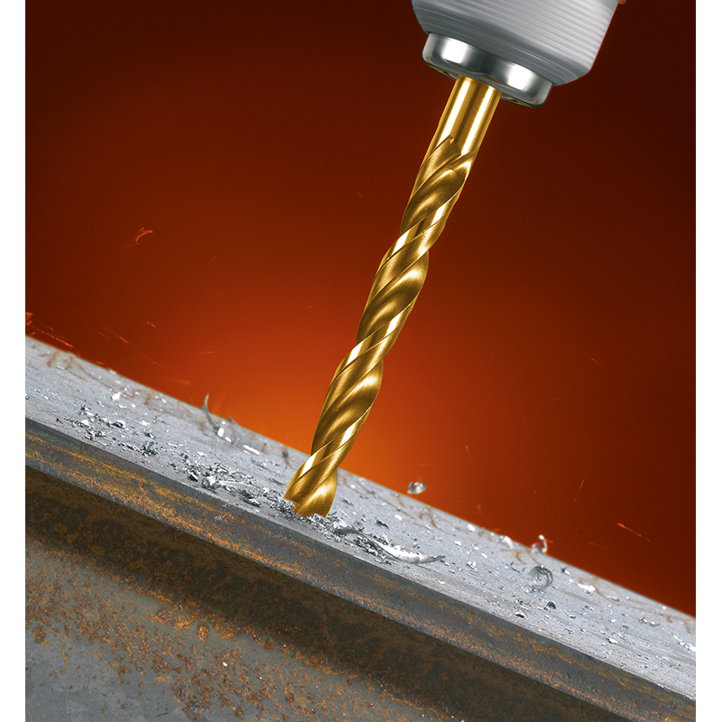 la pointe de centrage unique (à partir de Ø 4,8 mm) permet de percer avec précision sans se tromper, les lames d'épaulement spécialement affûtées fraisent des trous précis et circulaires avec des bords propres, pour une utilisation dans les aciers alliés et non alliés jusqu'à 900 N/mm² de résistance à la traction, les tôles et les matériaux profilés à paroi mince, les métaux non ferreux, le bois et les matières plastiques, à partir de Ø 5 mm avec revêtement antidérapant
