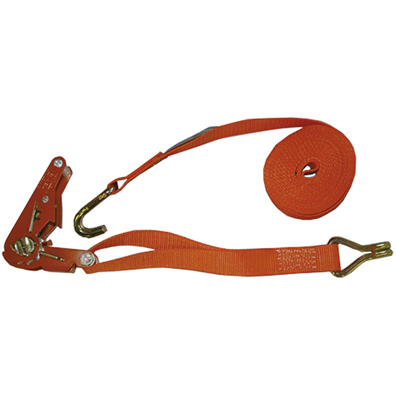 Sangle en polyester, 2 pièces, cliquet avec petit bout de sangle (50 cm de long), crochet à griffe à chaque extrémité.