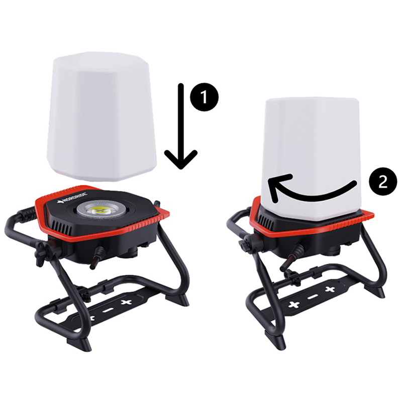 transforme le projecteur de travail LUMOS en une puissante lumière spatiale à 360°, incassable, rapide et facile à assembler