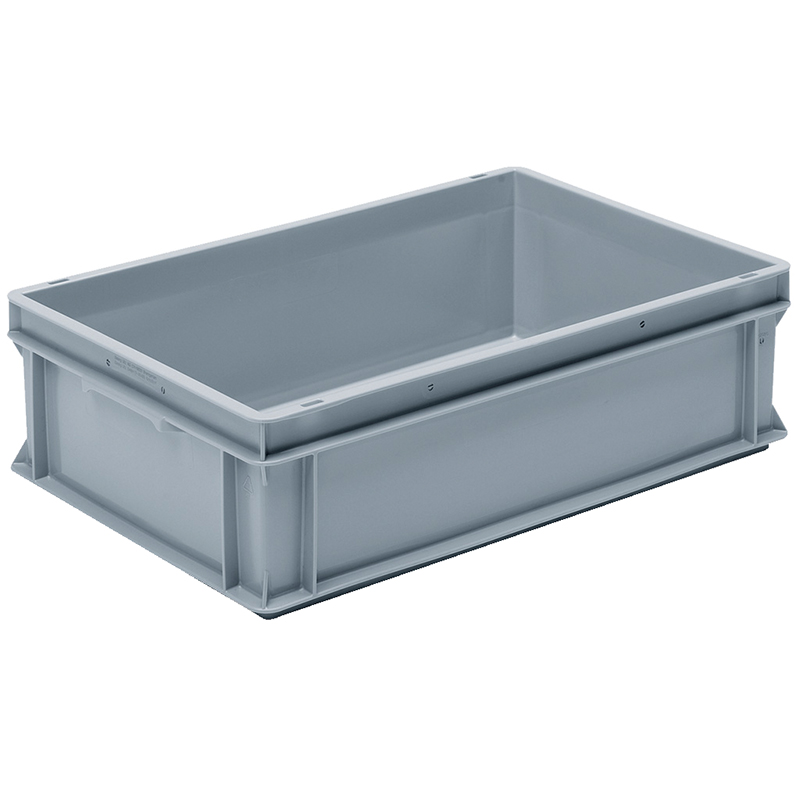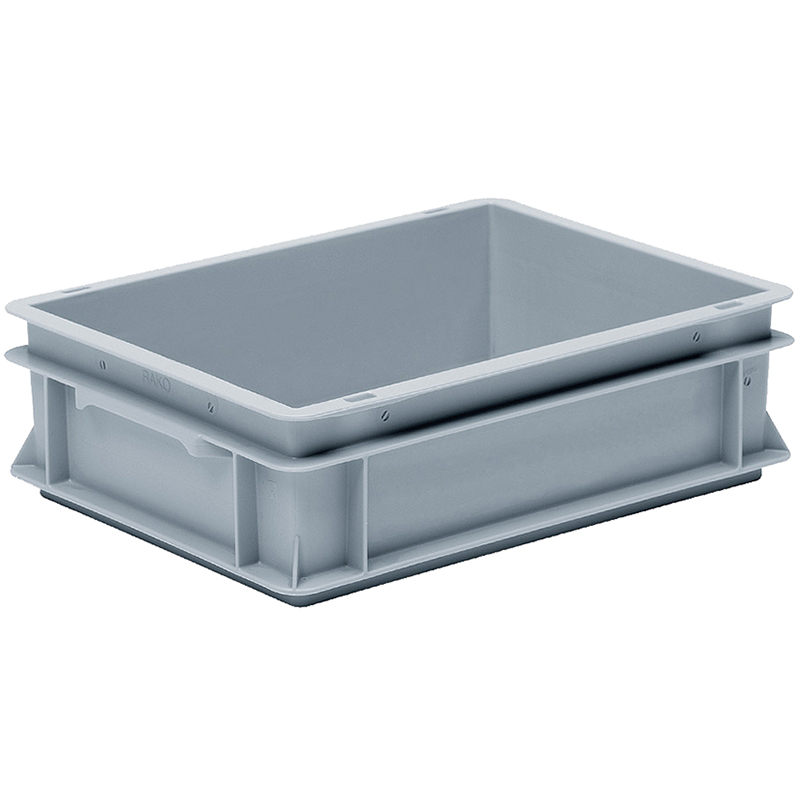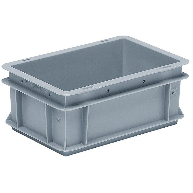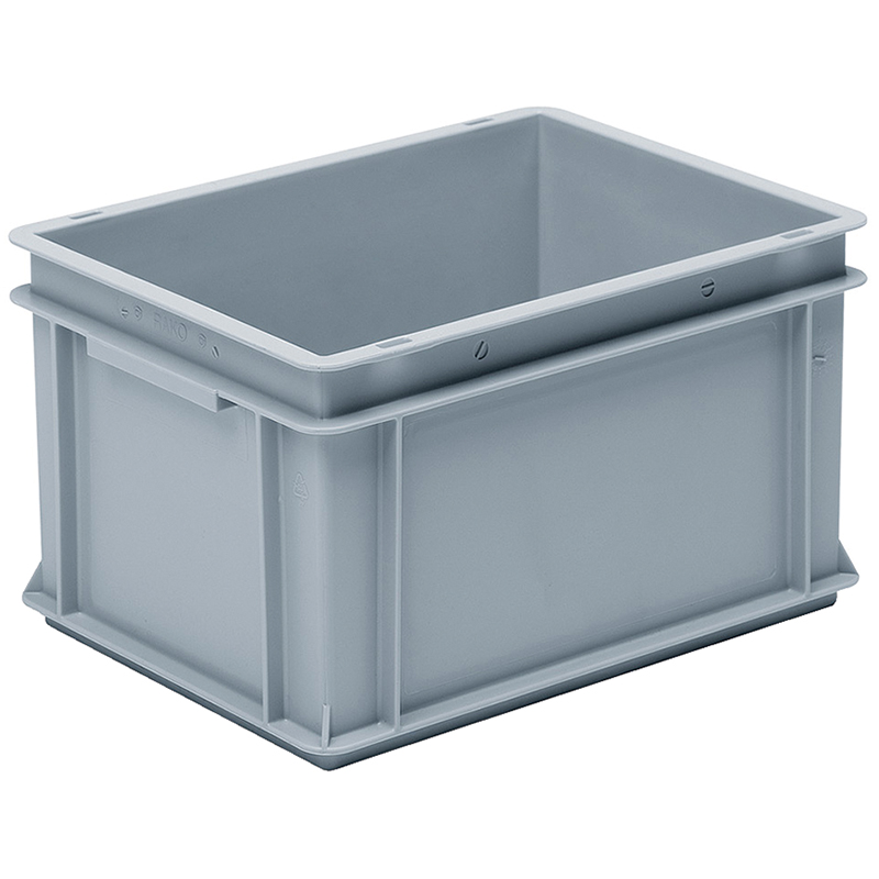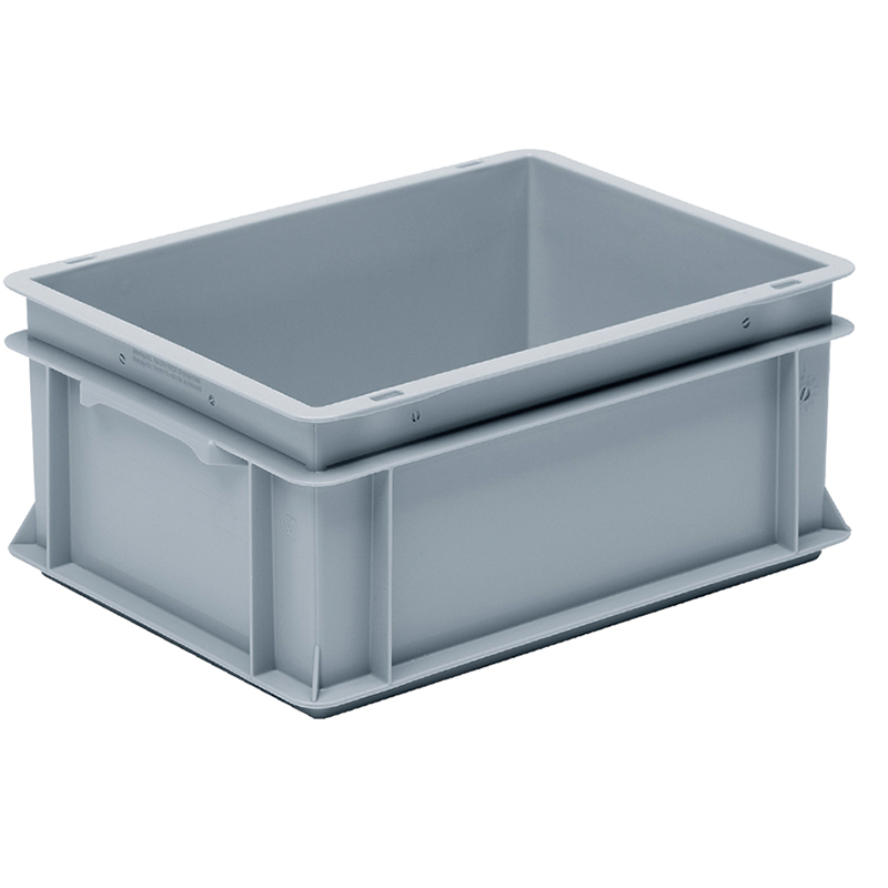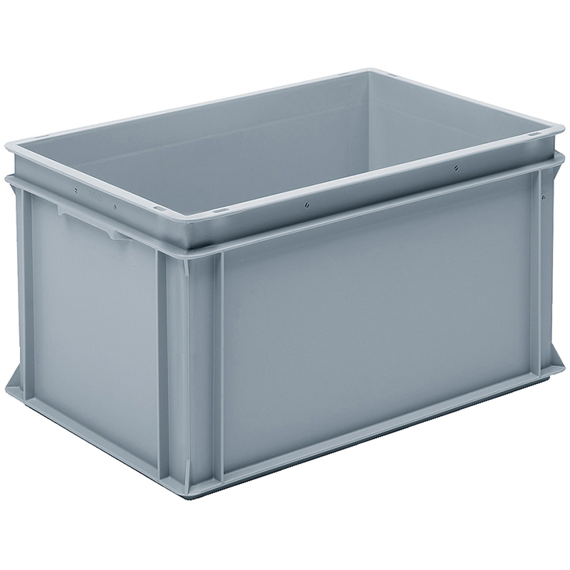 Caisse grise, empilable, avec poignées-coquilles sur les côtés