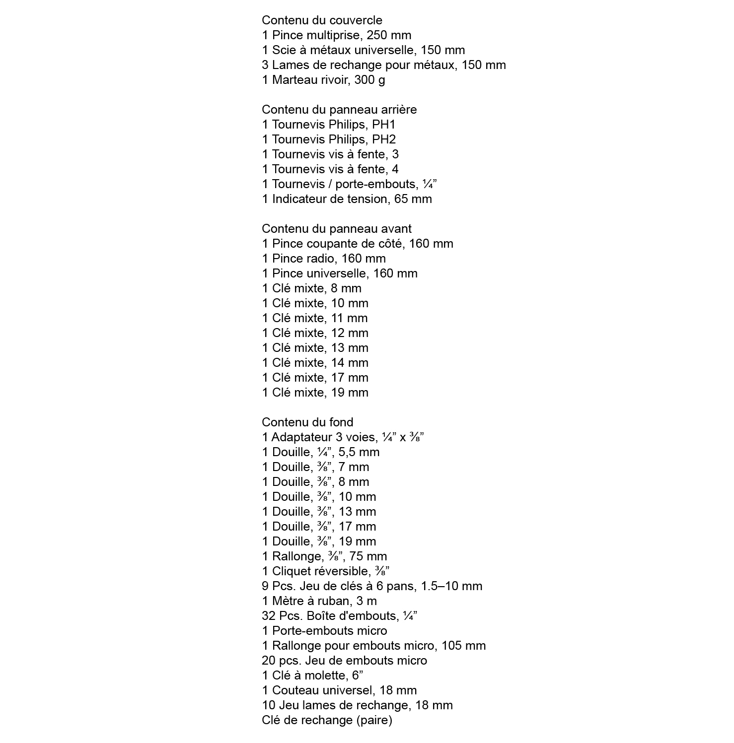 mallette robuste en plastique ABS avec des outils de menuisier pour les travaux de montage et de service, taille très compacte, cette mallette trouve partout sa place