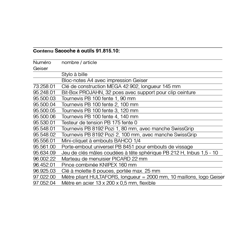 - Trousse d'outillage