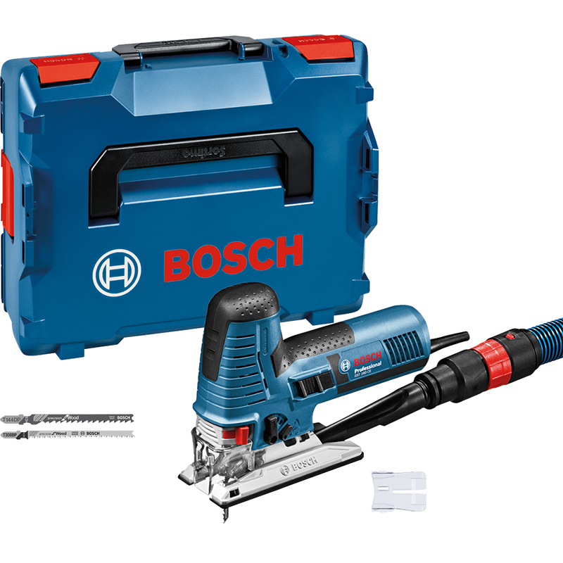 la forme de construction compacte et légère avec une petite poignée permet un contrôle optimal du sciage, très faibles vibrations, le double guidage très précis minimise le jeu de la lame de scie et l'empêche de se tordre ou de glisser, le système de changement de lame de scie sans outils et sans jeu (SDS) évite le flottement de la lame de scie pour une qualité de surface maximale, les LED très puissantes assurent un éclairage très lumineux de la zone de coupe, avec ventilateur d'aspiration, le trait de coupe reste propre, plaque d'appui en magnésium robuste orientable,