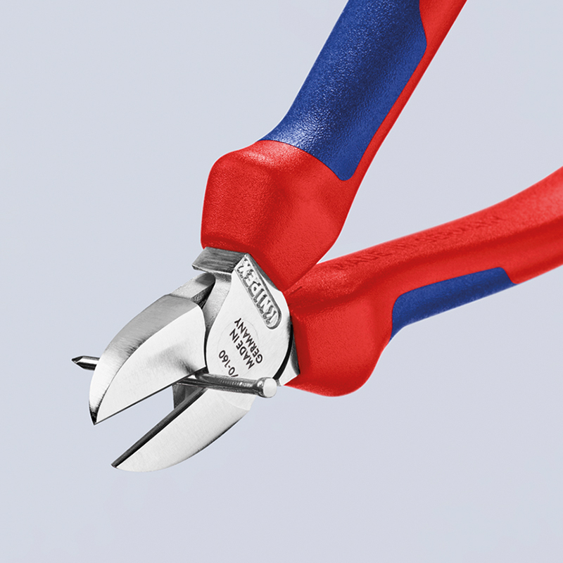la pince coupante de côté indispensable pour une utilisation polyvalente, matériaux de qualité supérieure et finition de précision pour une longue durée de vie, tranchants de précision pour fils doux et durs, coupe nette des fils en cuivre fins, même en bout de tranchants, tranchants trempés par induction, dureté d'env. 62 HRC, tête étroite permettant une utilisation dans des endroits difficiles d'accès