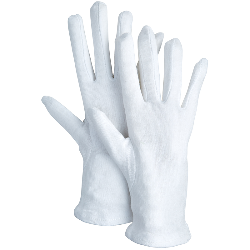 tricot en coton blanc offrant les propriétés d'une seconde peau, gant pouvant être porté des deux côtés, pour les travaux très délicats exigeant une bonne sensibilité tactile ou pour lesquels les pièces doivent être exemptes de marques de transpiration et d'empreintes digitales