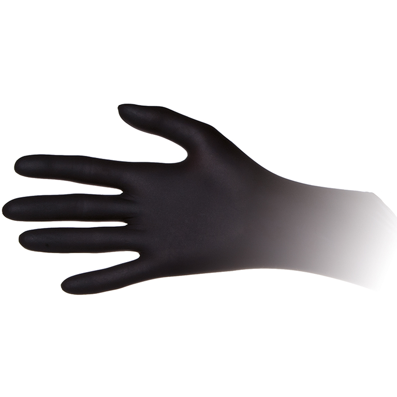 couleur noir, avec bord roulé, sans poudre, non stérile, toucher tactile optimal, doigts texturés, résistant à la déchirure et aux piqûres, résistant aux huiles et aux graisses, pour les travaux fins où la pièce doit être protégée des traces de doigts et de la transpiration des mains, approuvé pour contact alimentaire