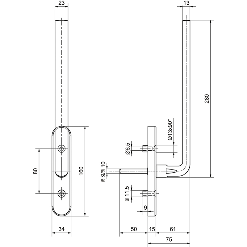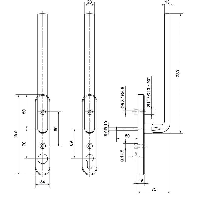 Poignée de porte soulevante-coulissante GLUTZ 5040-280 / 5619 Merkur PVD