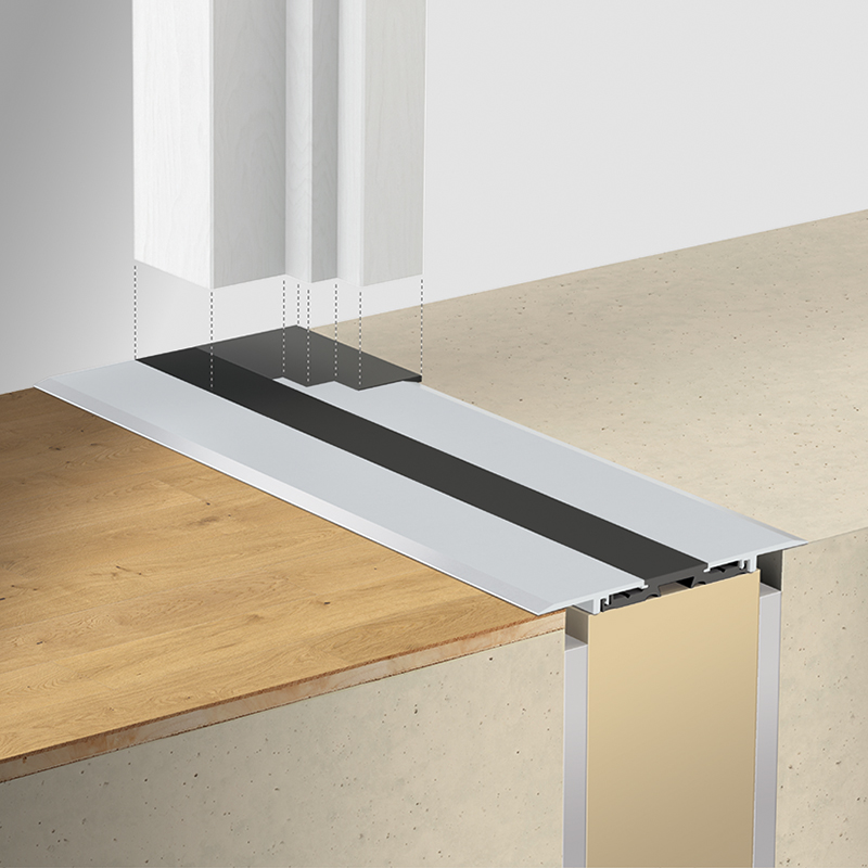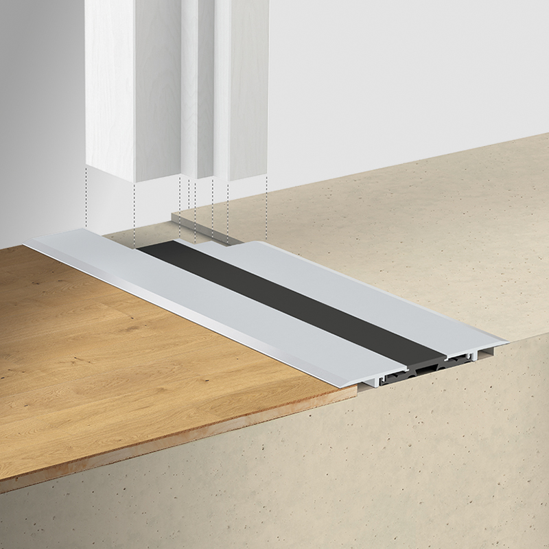 Planet F120 seuil click, séparé thermiquement, de construction modulaire, adapté aux transitions sans barrières, liaison optimale entre l'intérieur, avec raccord vissé invisible, pour seulement 5 mm d'entrée au sol, anodisé incolore EV1 (aluminium), remplacement ultérieur des profilés en aluminium, optimisés pour l'utilisation de joints à abaissement