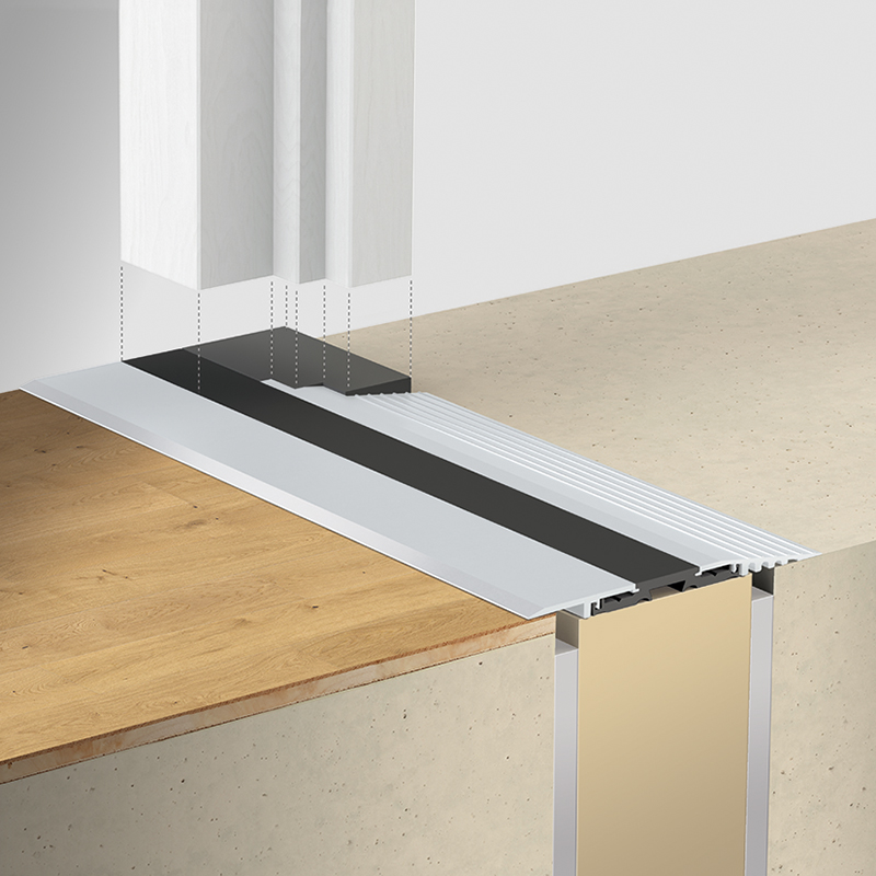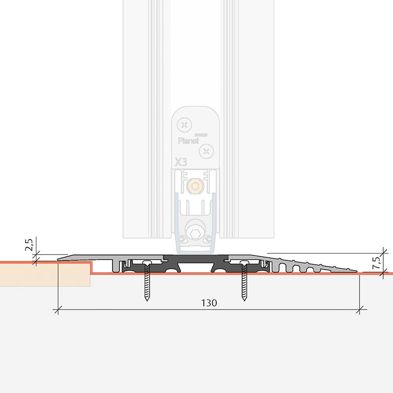 Planet F130 Seuil click, séparé thermiquement, de construction modulaire, adapté aux transitions sans obstacle, liaison optimale entre l'intérieur et l'extérieur, avec vissage invisible, adaptée aux situations de construction avec talons hauts, anodisé incolore EV1 (aluminium), remplacement ultérieur des profilés en aluminium, optimisés pour l'utilisation de joints à abaissement