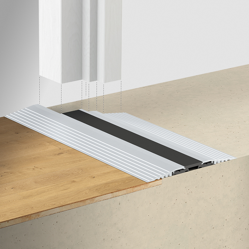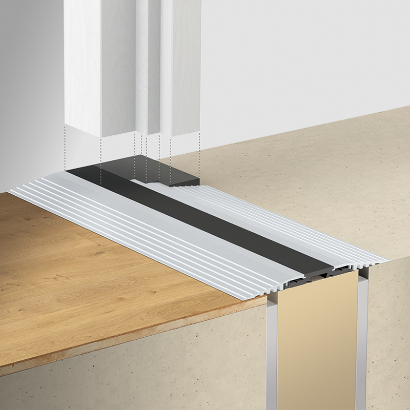 Planet F140 Seuil click, séparé thermiquement, de construction modulaire, adapté aux transitions sans obstacle, liaison optimale entre l'intérieur et l'extérieur, avec raccord vissé invisible, adapté aux situations de construction sans évidement au sol, donc idéale pour les rénovations, anodisé incolore EV1 (aluminium), remplacement ultérieur des profilés en aluminium, optimisés pour l'utilisation de joints à abaissement