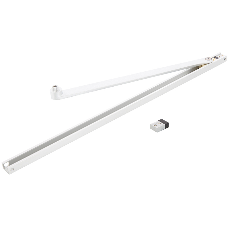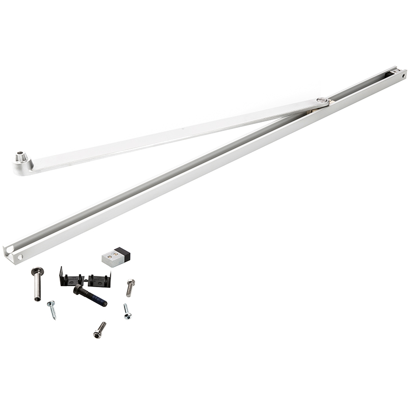 schmales, robustes Gestänge mit "chromierter" Oberfläche und Aluminiumgleitschiene, ziehend und drückend, integrierter Offenanschlag, mit Befestigungsschrauben