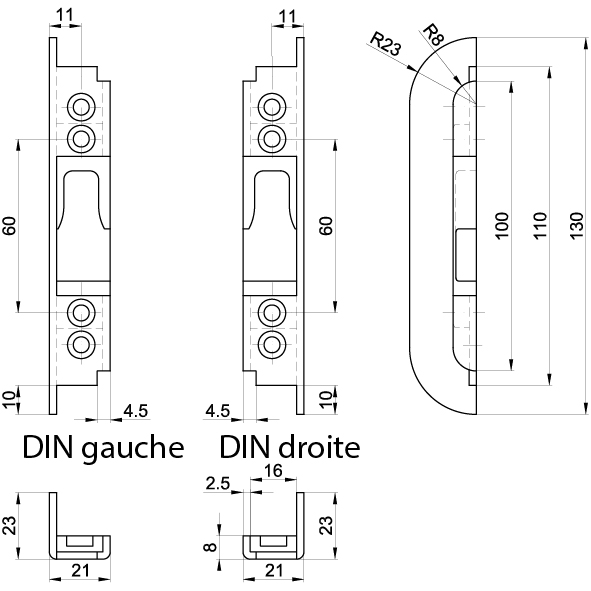 • En cas de montage en combinaison avec la serrure multipoints 30700, la gâche doit être retournée, car le mécanisme de fermeture se verrouille désormais vers le bas. Ainsi, en cas de montage "DIN droite" par exemple, il faut utiliser un kit avec DIN gauche.