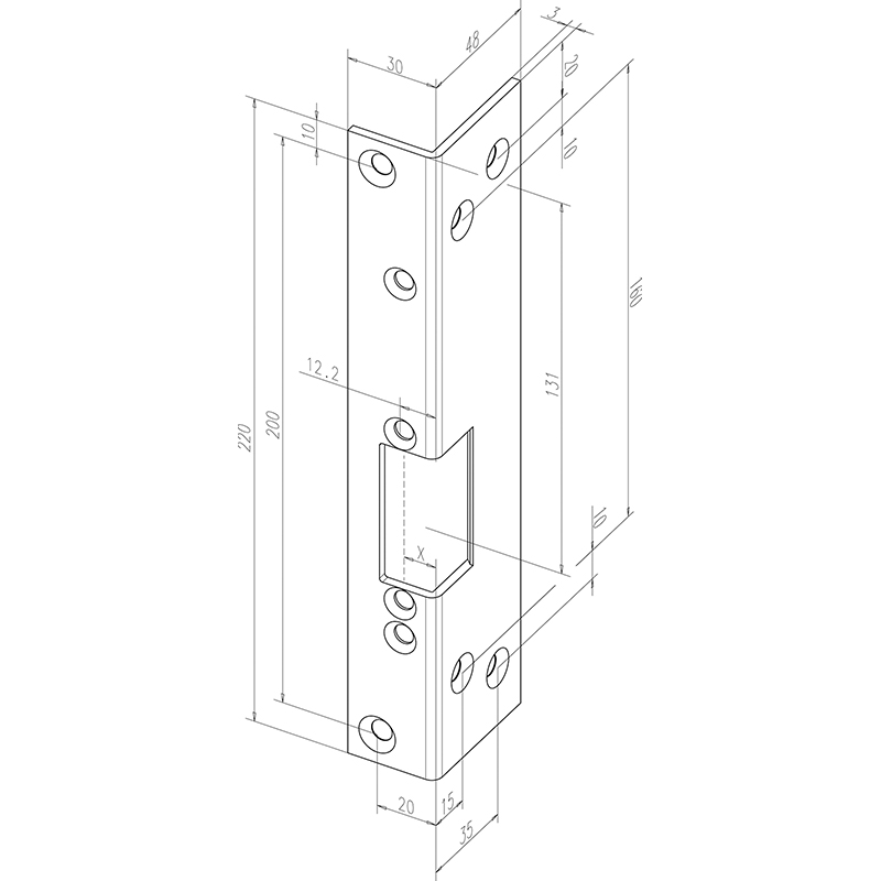 Gâche d'angle effeff carrée courte, pour gâche électrique de sécurité et de porte de secours 131 / 331