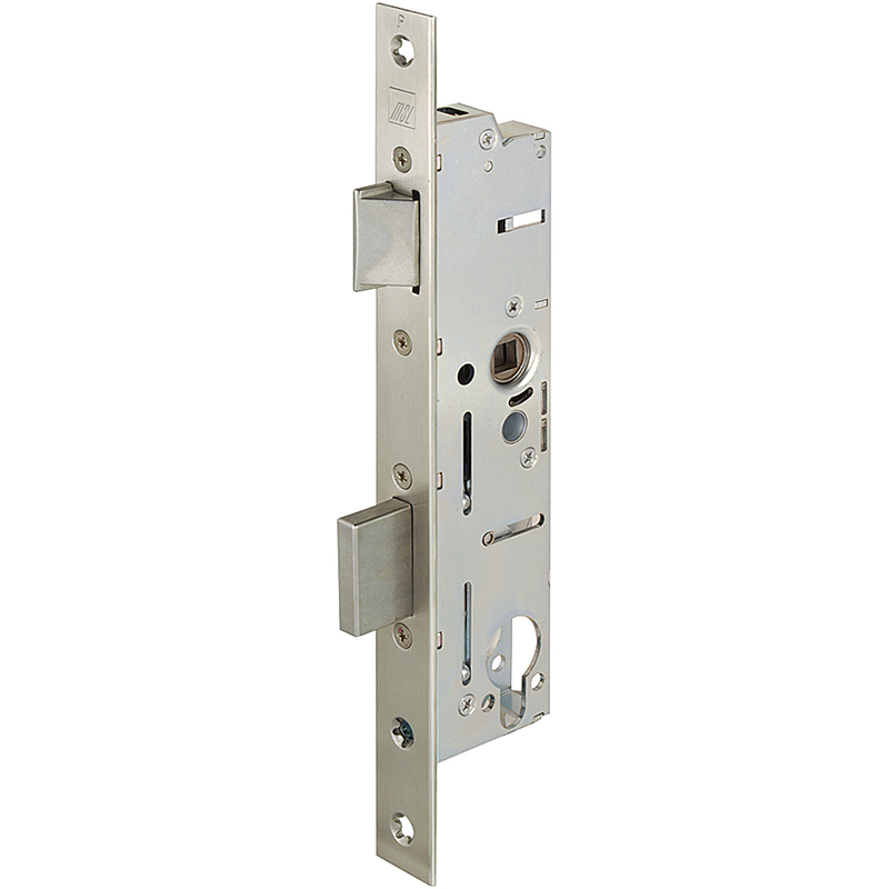 Serrure anti-panique à mortaiser MSL Delta 19444 PE, pour profilé de cadre tubulaire, avec têtière d'angle 24 x 270 mm inox mat