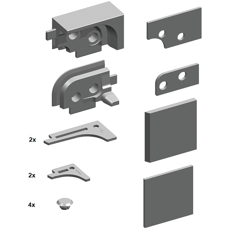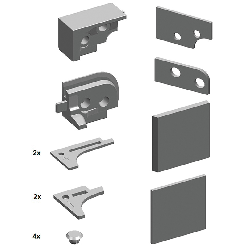 plastique, set de pièces pour assemblage d'angle propre des listes de fermeture 28/28 (horizontal) et 28/48 (vertical), une fois le seuil d'étanchéité desserré, la pièce d'angle peut être scellée en continu à l'intérieur et à l'extérieur
