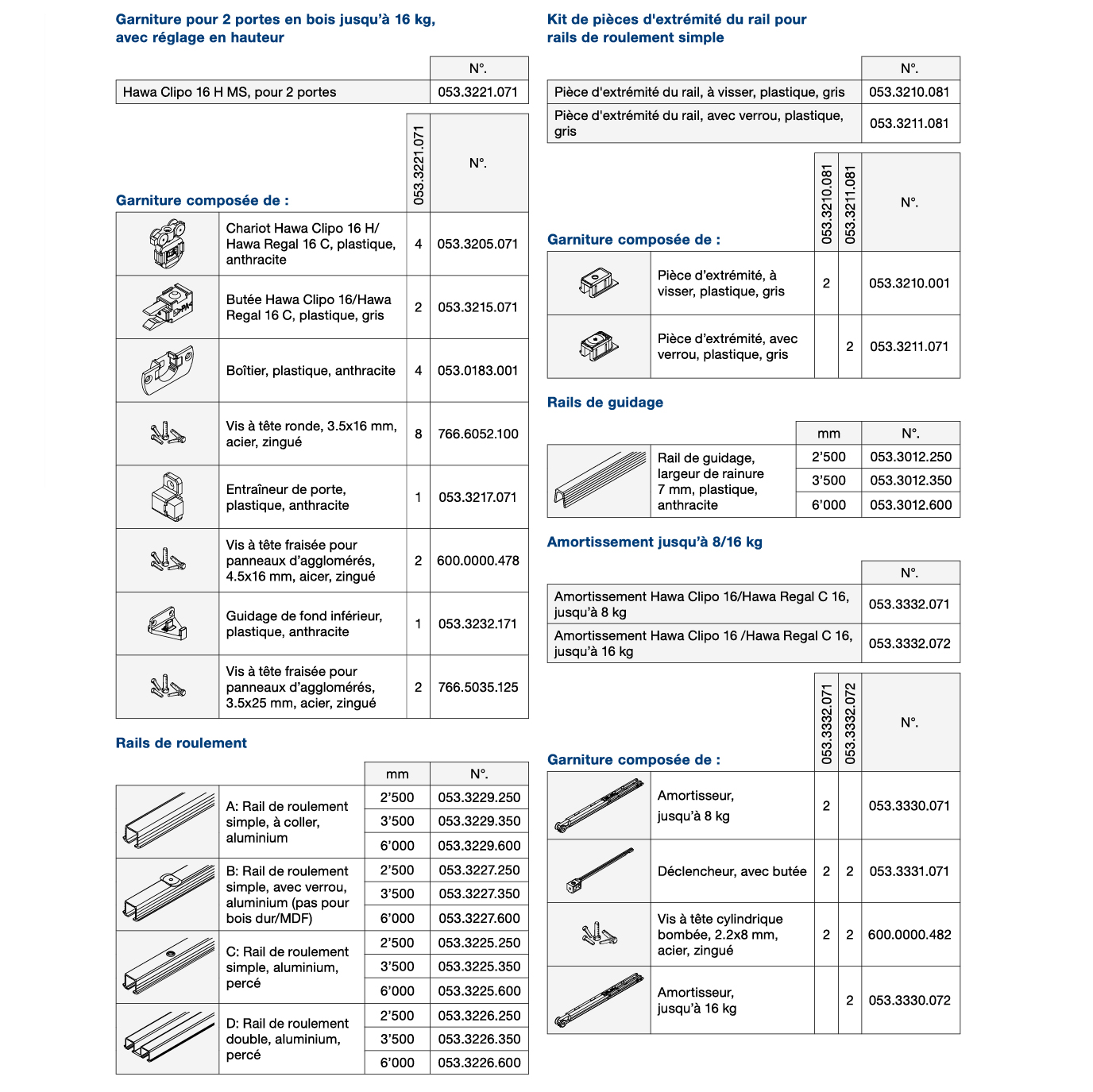 Ferrure de porte coulissante en bois HAWA Clipo 16 H Mixslide