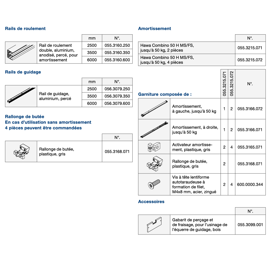 Ferrure de porte coulissante HAWA Combino 50 H Mixslide, sans tirage d'amortisseur