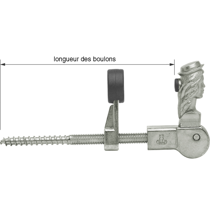 Corps et butée en alliage de fonte et d'aluminium avec vis inox, tige filetée M10 en acier passivé, réglable pour volet simple ou double, avec protection plastique, tige filetée avec clé à insérer en tournant