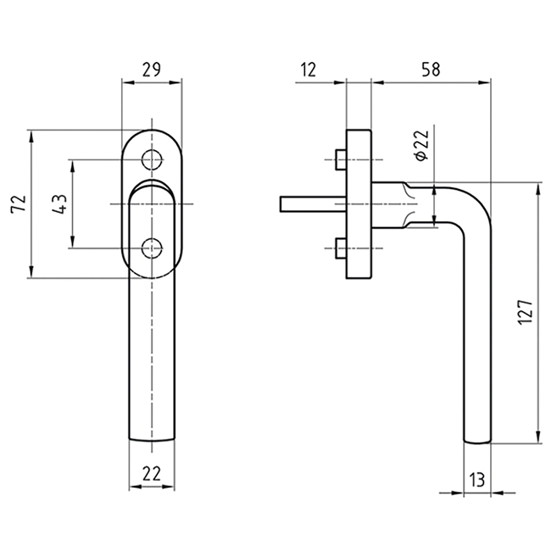 - Poignée de fenêtre pour montage en paire en usine.