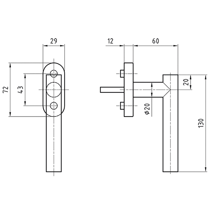 - Poignée de fenêtre pour montage en paire en usine.