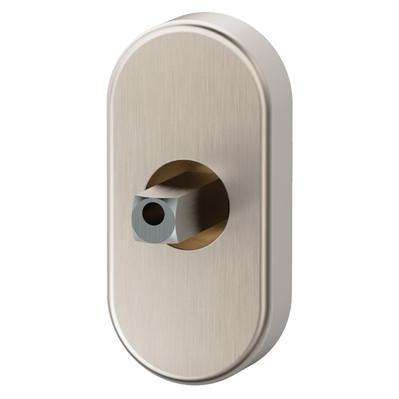 Protection en laiton dépoli mat nickelé ou chromé, avec arrêt 90°, pour poignées femelles avec embout 16 mm et trou carré 8 mm, sans vis