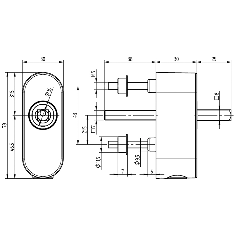 zinc mat nickelé, avec arrêt 90°, pour poignées femelles avec embout 16 mm et trou carré 8 mm, 200 Nm Résistance à la torsion et à l'arrachement, avec cylindre de pression à fermeture identique avec 2 clés dentelées 2D151, testé selon la norme EN 13126-3:2023 et EN 1627-1630 RC 1-6, avec 2 vis M5 x 40 mm