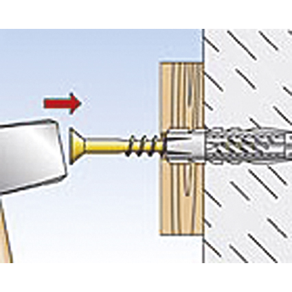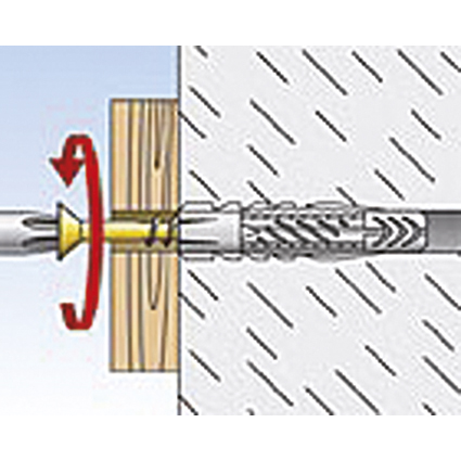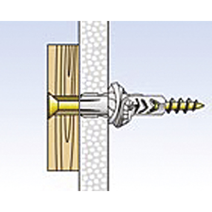 thermorésistante de -40° C à +80° C, l'arrêt de sécurité empêche l'extension prématurée lors du montage traversant, la sécurité contre la rotation en dents de scie empêche la rotation dans le trou, pour plaques de plafond creux en béton et en béton précontraint, pierre naturelle, structure étanche, brique pleine, brique pleine silico-calcaire, brique pleine en béton léger, béton cellulaire (béton expansé), plaques tout en plâtre, brique perforée, brique perforée silico-calcaire, parpaing creux en béton léger, plafonds creux en briques, plaques de plâtre et panneaux en fibres de plâtre, panneaux agglomérés
