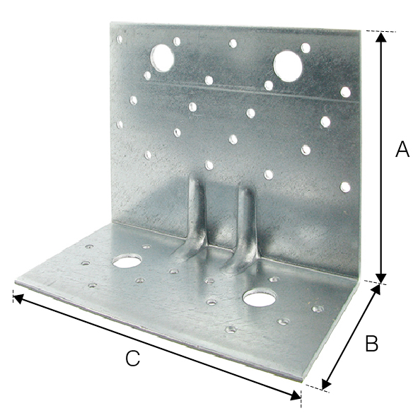 Tôle d'acier galvanisé à chaud, utilisé pour raccorder les composants en bois sur le bois ou le béton, peut supporter des charges de traction et de poussée, en cas d'utilisation de différents trous de clous, il est possible de raccorder des poutres ou des supports, des goujons d'ancrage M12 peuvent être utilisés pour la fixation sur le béton