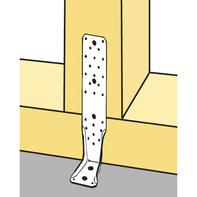 Tôle d'acier galvanisé à chaud, permet des raccords optimaux entre le bois et d'autres matériaux de construction comme le béton, l'acier, la maçonnerie, etc., les goujons d'ancrage M12 peuvent être utilisés pour la fixation sur le béton, Ø de perforation par clou 5 mm