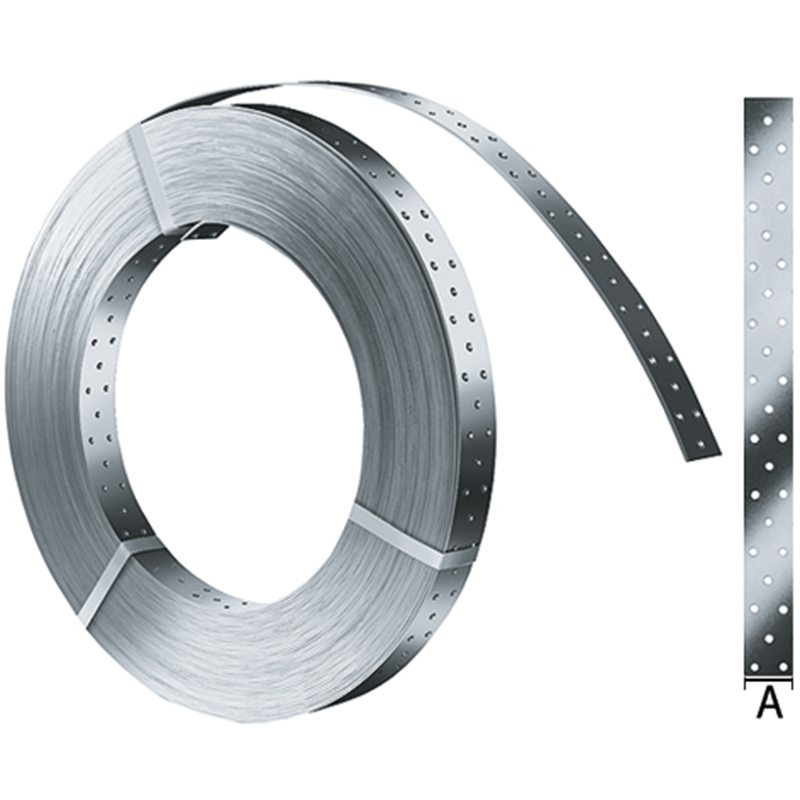 Tôle d'acier galvanisé à chaud, utilisé comme tirants dans des assemblages de renforcement de constructions de toit, plusieurs feuillards peuvent être montés en parallèle en cas de charges plus élevées, Ø de perforation par clou 5 mm