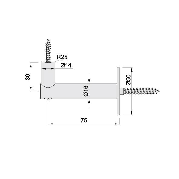 Inox, pour main-courante ronde, avec vis pour fixation de la main-courante et support de main-courante, sans cheville