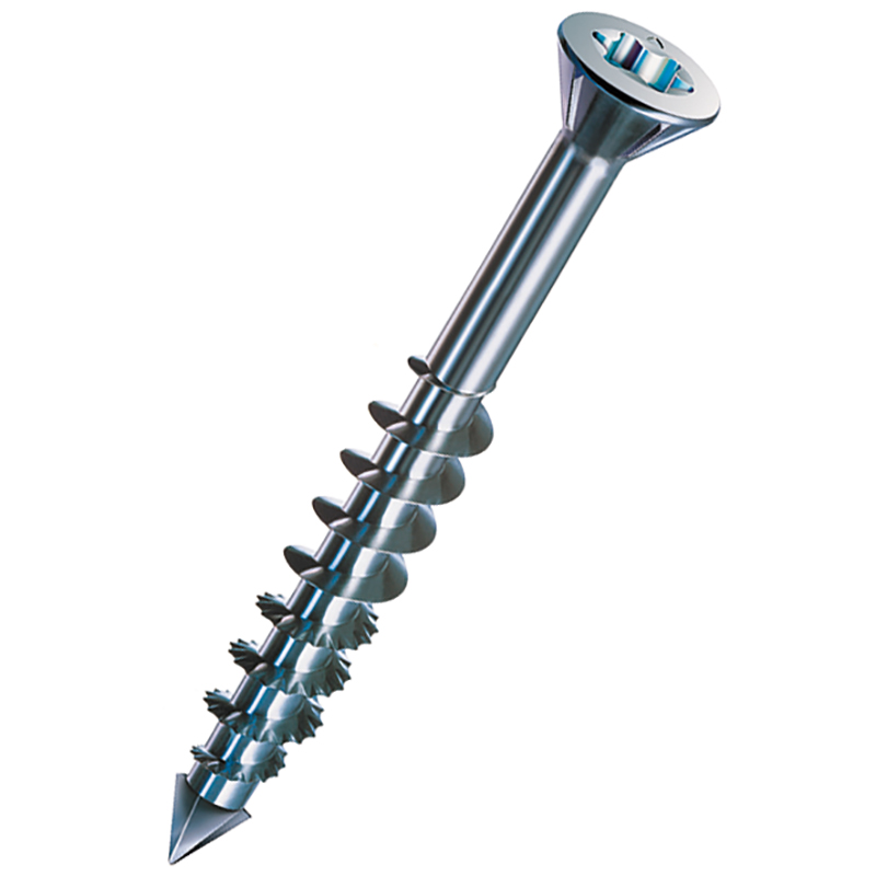 - Grâce aux pointes CUT, les vis peuvent être disposées avec précision et vissées sans pré-perçage (en fonction du bois) dans les panneaux de fibres.