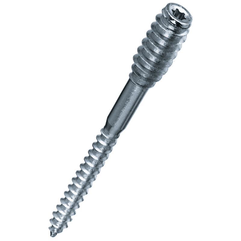 Acier galvanisé, 2 niveaux, avec Torx, premier niveau avec filetage pour panneaux agglomérés Ø 6 mm, second niveau avec filetage pour panneaux agglomérés Ø 10 mm, pour l'assemblage définitif de 2 éléments séparés