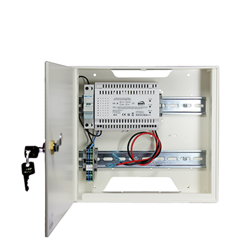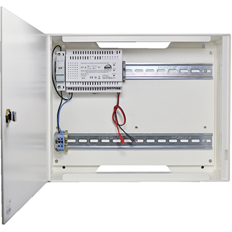 Boîtier pour montage mural avec porte, cylindre et rails DIN,