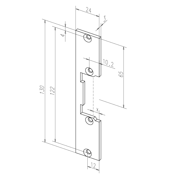 Gâche plate effeff carré courte, pour gâche électrique