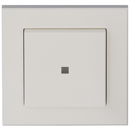 Emetteur mural radio bidirectionnel BRC-W, fonctionne sur piles, y compris bascule de commutation et cadre similaire au design 55 mm en plastique blanc, peut être vissé au choix sur le support ou intégré dans des séries d'interrupteurs existantes Systen 55, conçu pour une utilisation à l'intérieur et des conditions plus légères, utilisation uniquement en combinaison avec le récepteur radio BRC-R DORMA