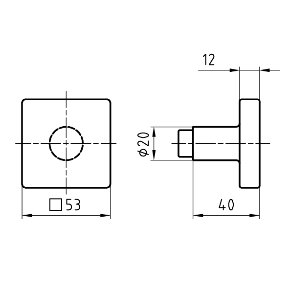 - Bouton plat 53 x 53 mm, épaisseur 12 mm