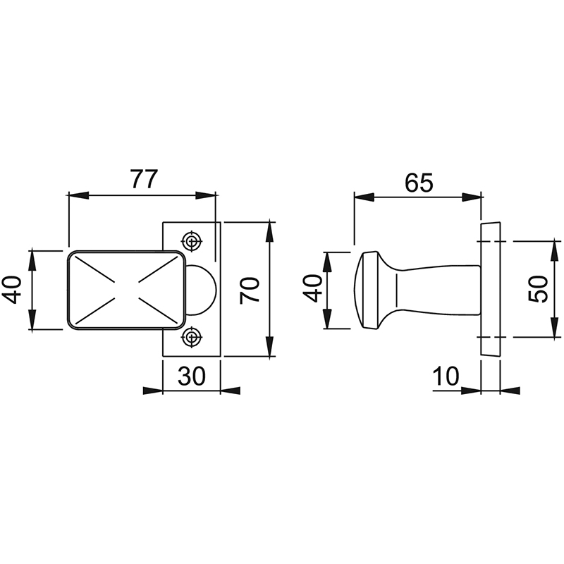 Aluminium incolore anodisé F1, bouton avec filetage fin M12, rosace 30 x 70 x 10 mm, distance entre les trous de vis 50 mm, sans vis