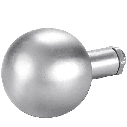 Inox mat, central, avec guidage ovale pour montage fixe de boutons sur plaques ou rosaces avec estampage ovale correspondant, avec écrou de fixation M16, avec filet intérieur M10, Ø de collet 20 mm