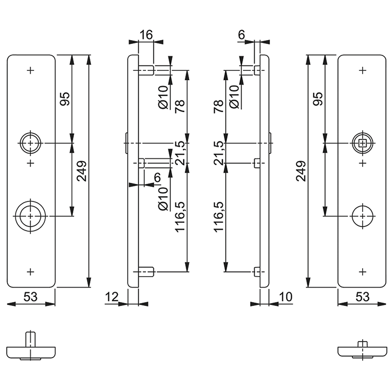 plaque intérieure 10 mm avec structure portante en Zamak et raccords de guidage pour vissage par paire,