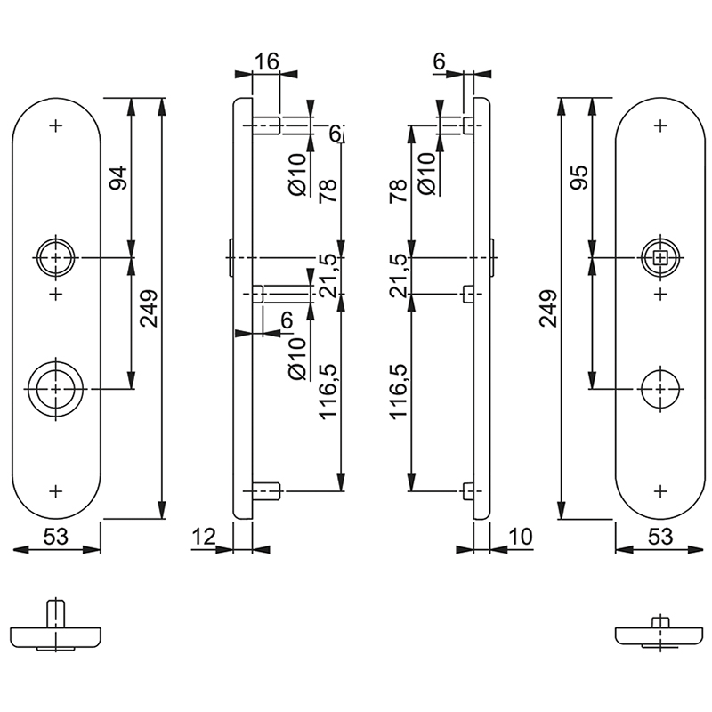 plaque intérieure 10 mm avec structure portante en Zamak et raccords de guidage pour vissage par paire,