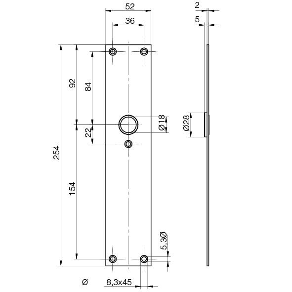 percée pour vis M5 pour vissage par paire avec plaque extérieure de sécurité, pour harmonisation optique si des plaques plates en inox sont utilisées à l'intérieur,