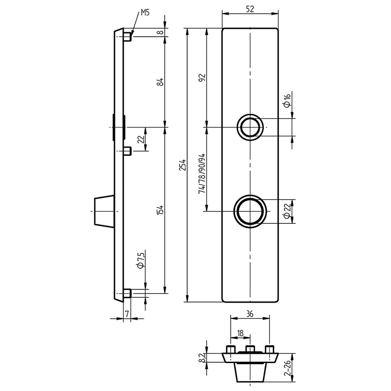 Plaque longue de sécurité MEGA 35.490, carrée, préparée pour plaque de protection