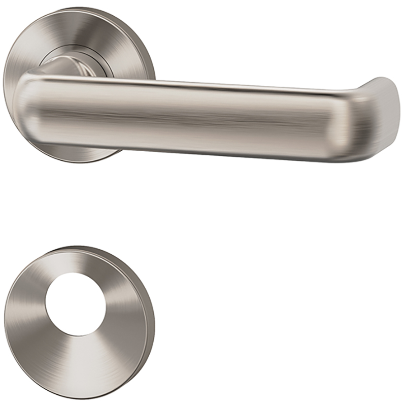 Poignée femelle laiton mat nickéle monté fixe sur rosace de poignée inox mat satiné avec ressort de rappel,